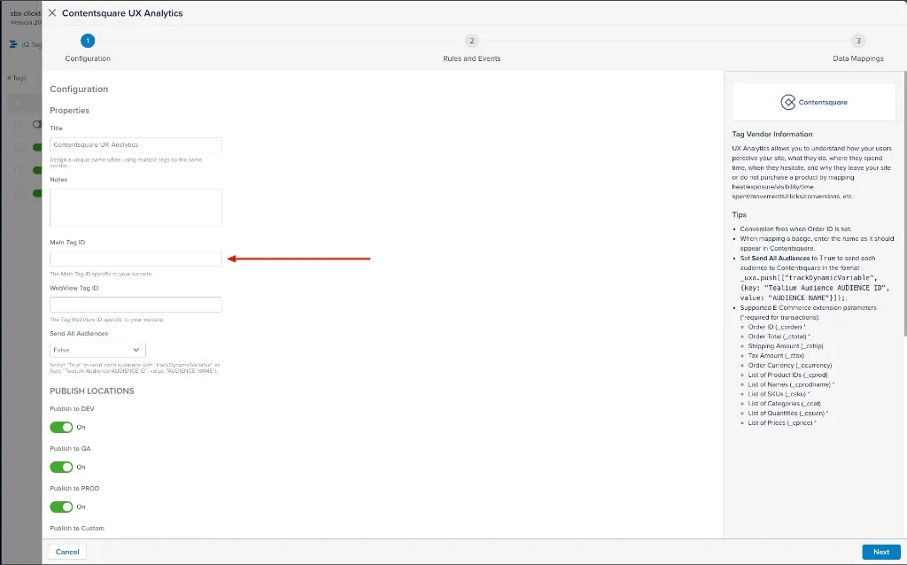 Enter your Tag ID (should be provided by your Contentsquare Implementation team).