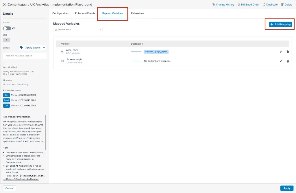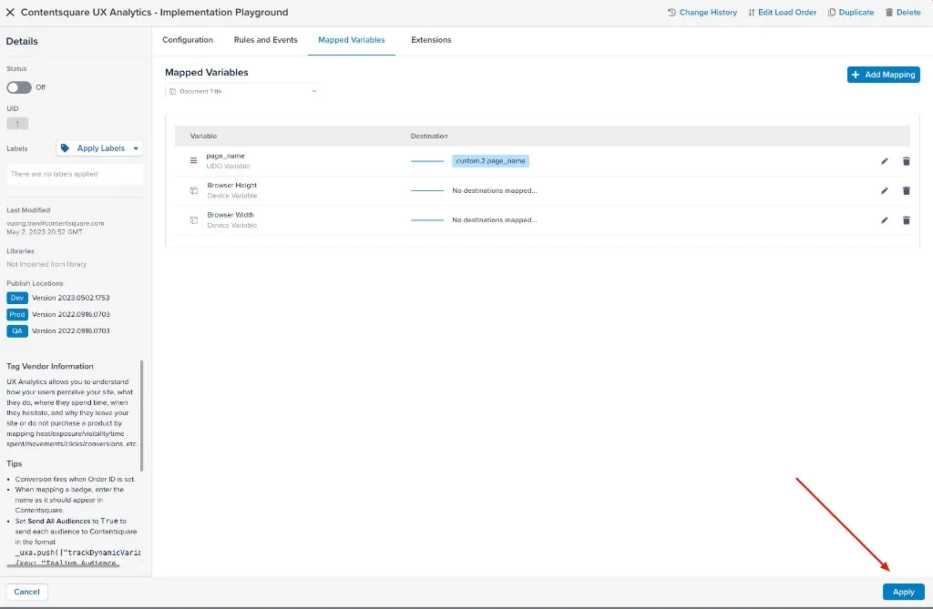 Implementing the tag and pushing data layer variables to Contentsquare: