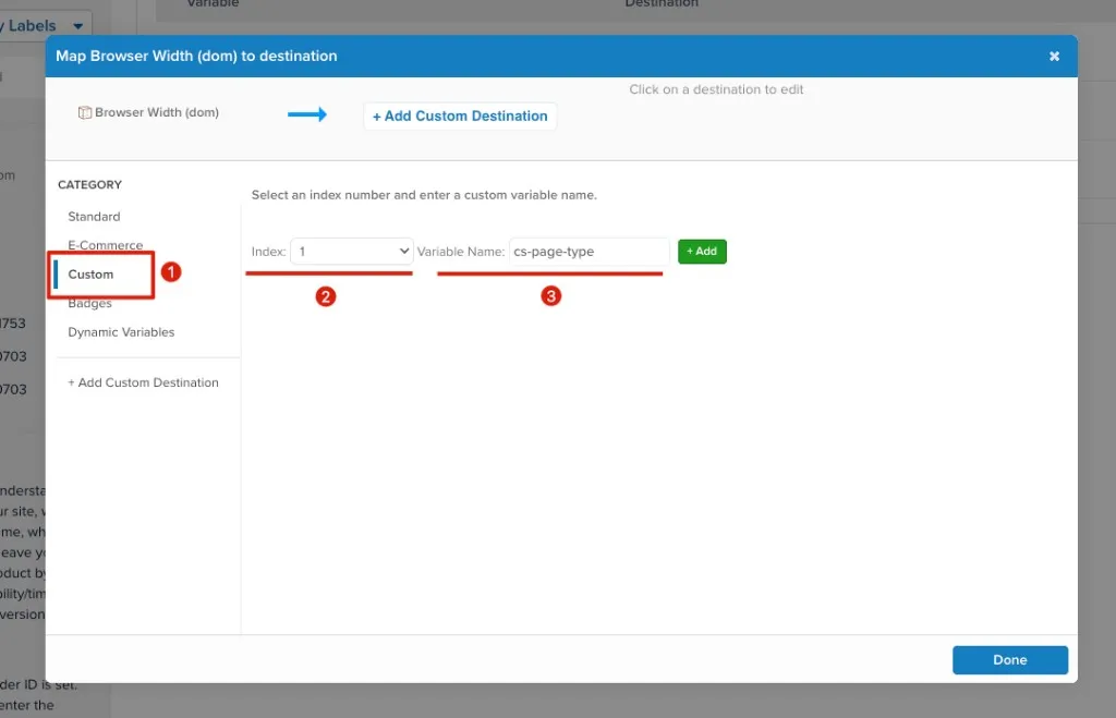Add the desired Custom Variables: