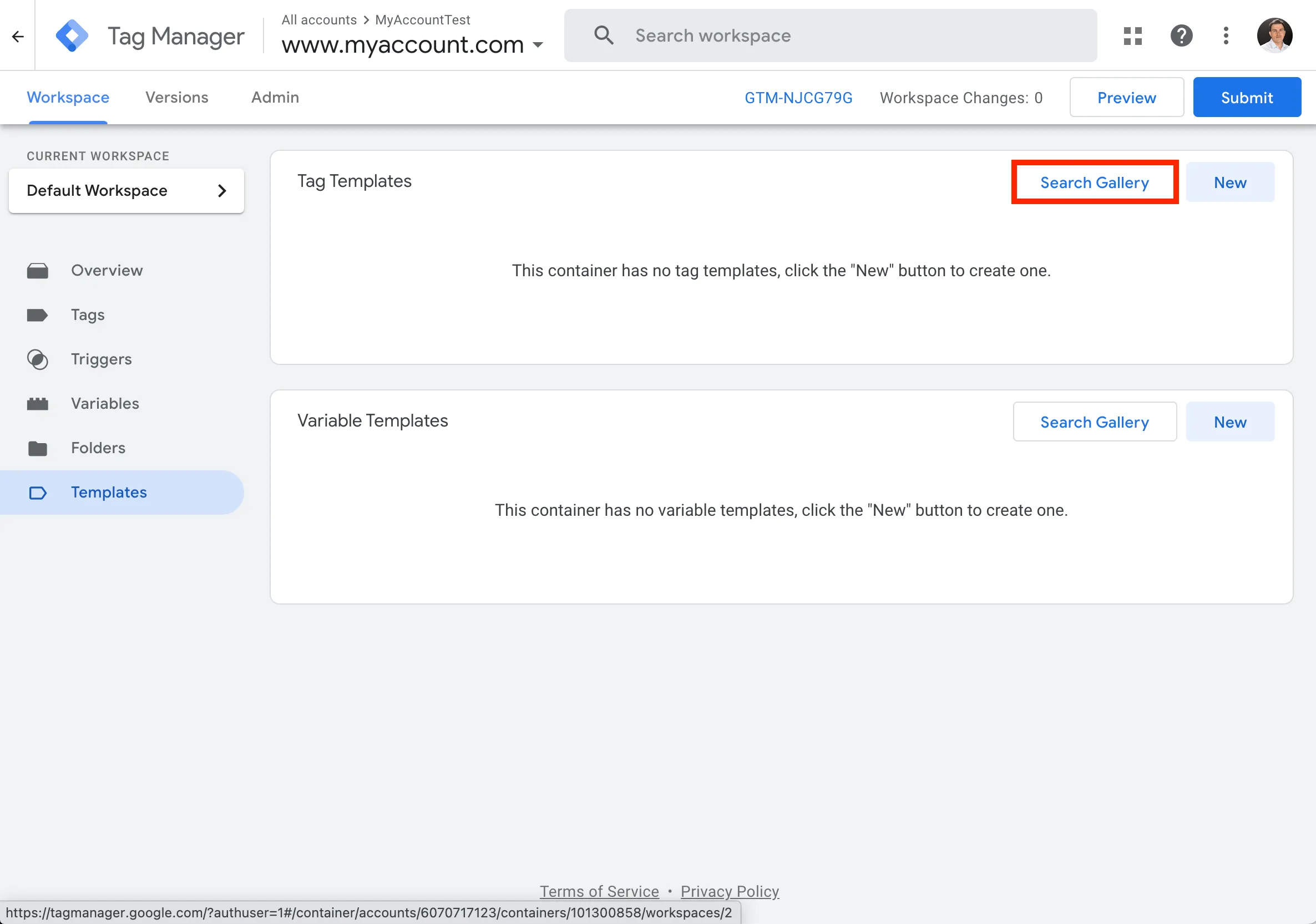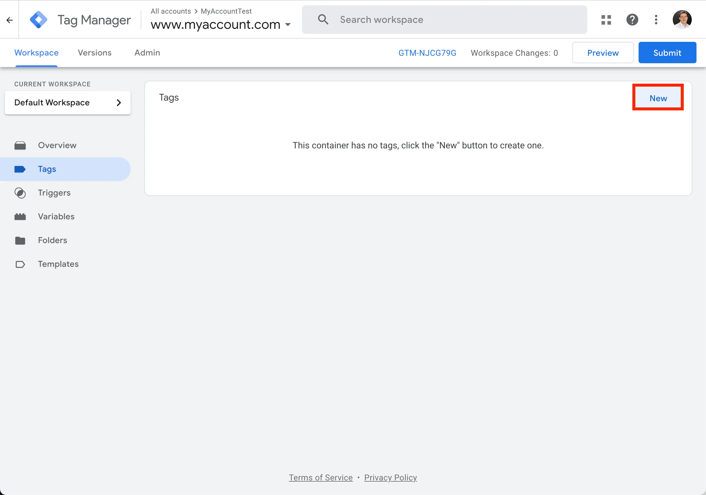 Save your changes and go back to your container. You should now see both the template and the newly created tag.