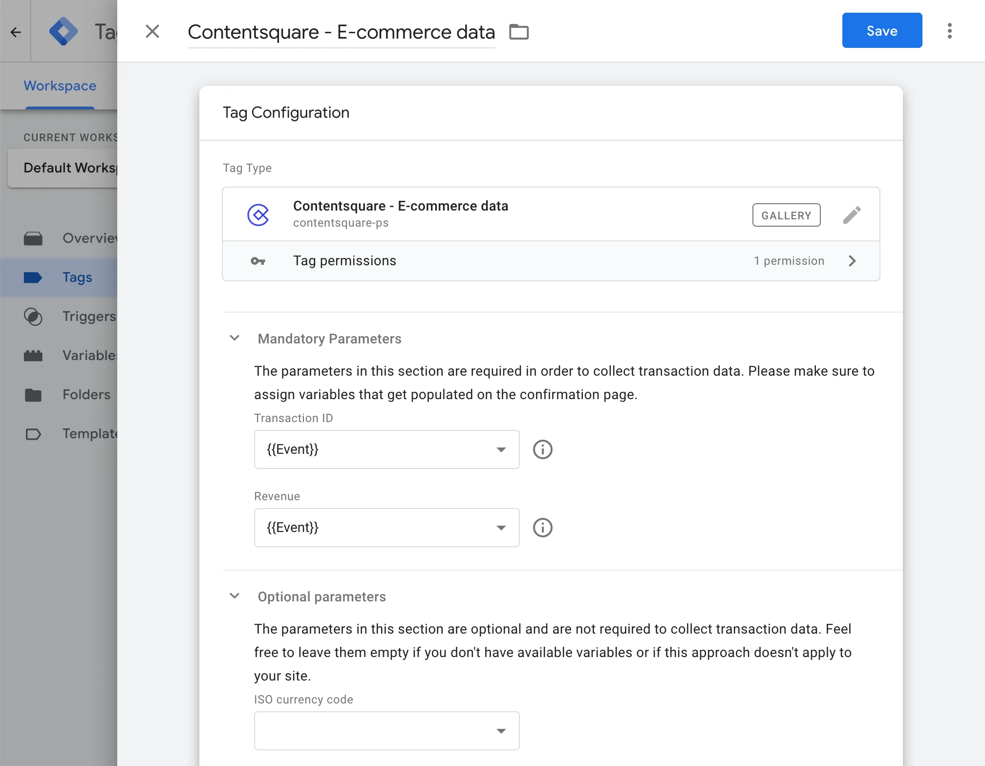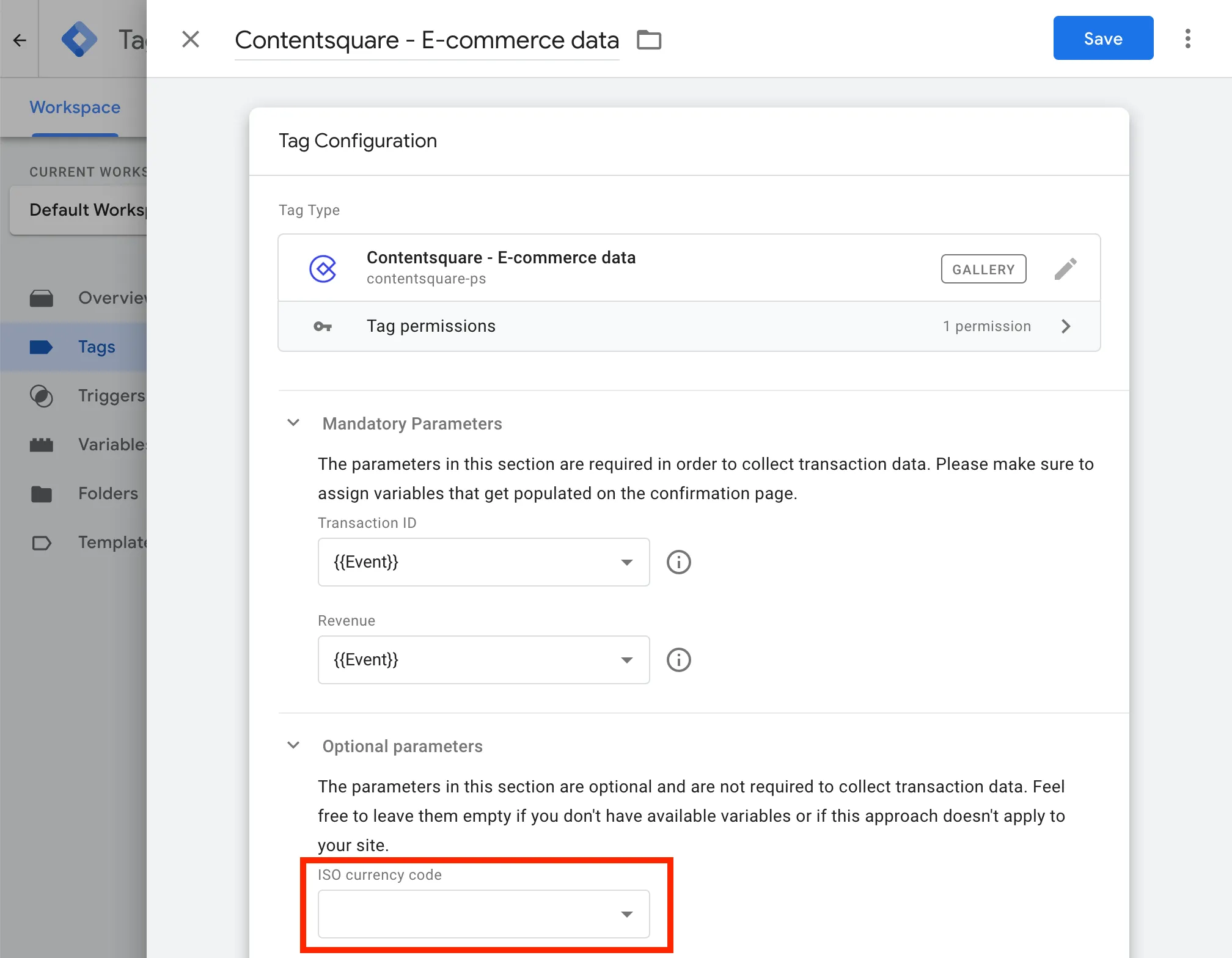 If you would like to send Contentsquare the currency value as well, fill in the optional parameters section.