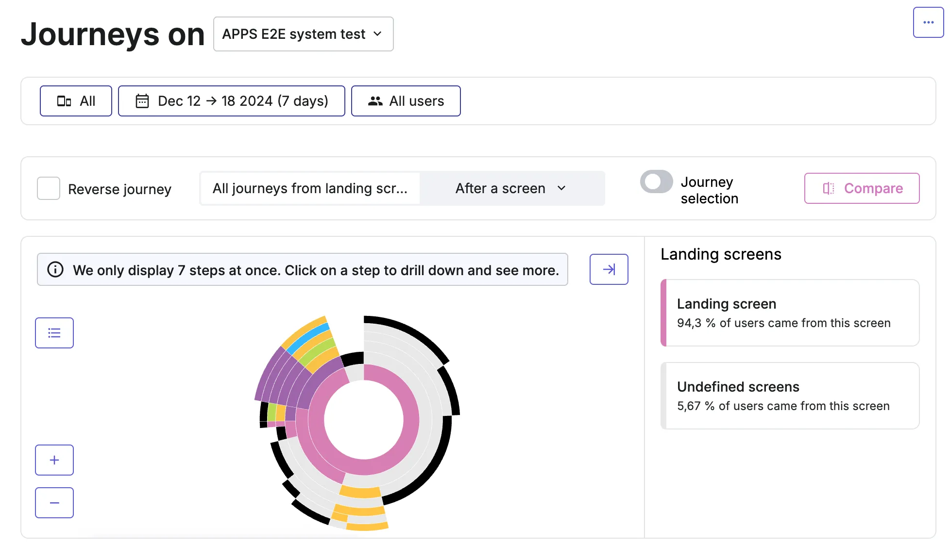 Section titled In Journey AnalysisOpen Journey Analysis ↗ in Contentsquare and visualize the user journeys main steps across your app, screen by screen.