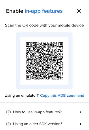 Section titled On an emulator: use the ADB commandIf you are using an emulator, you can use the ADB command to enable in-app features.