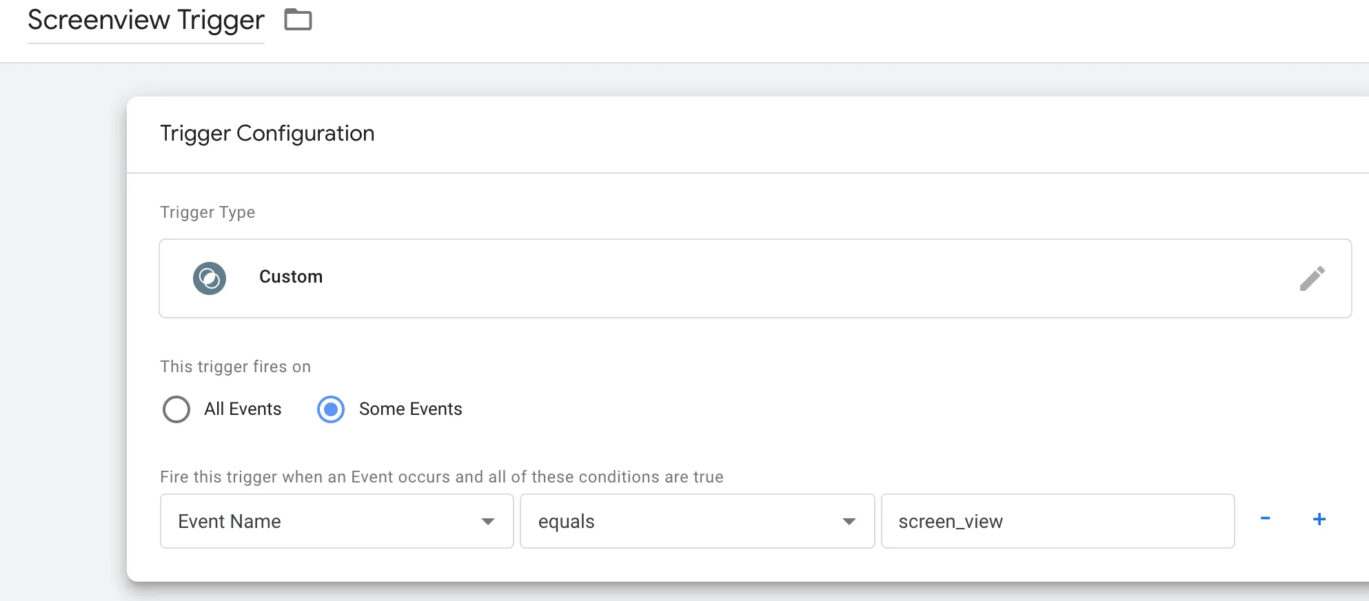 Section titled Screenview triggerWe will need to tell Google Tag Manager when to send a Contentsquare screenview, and for that we need to create a Trigger. Firebase sends screenviews as events of name screen_view, so we need to create a trigger for that event.
