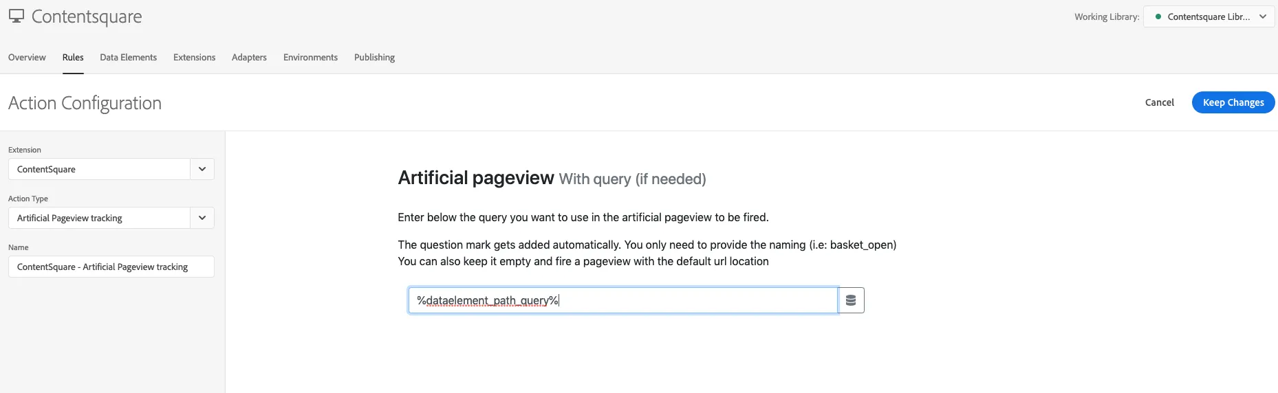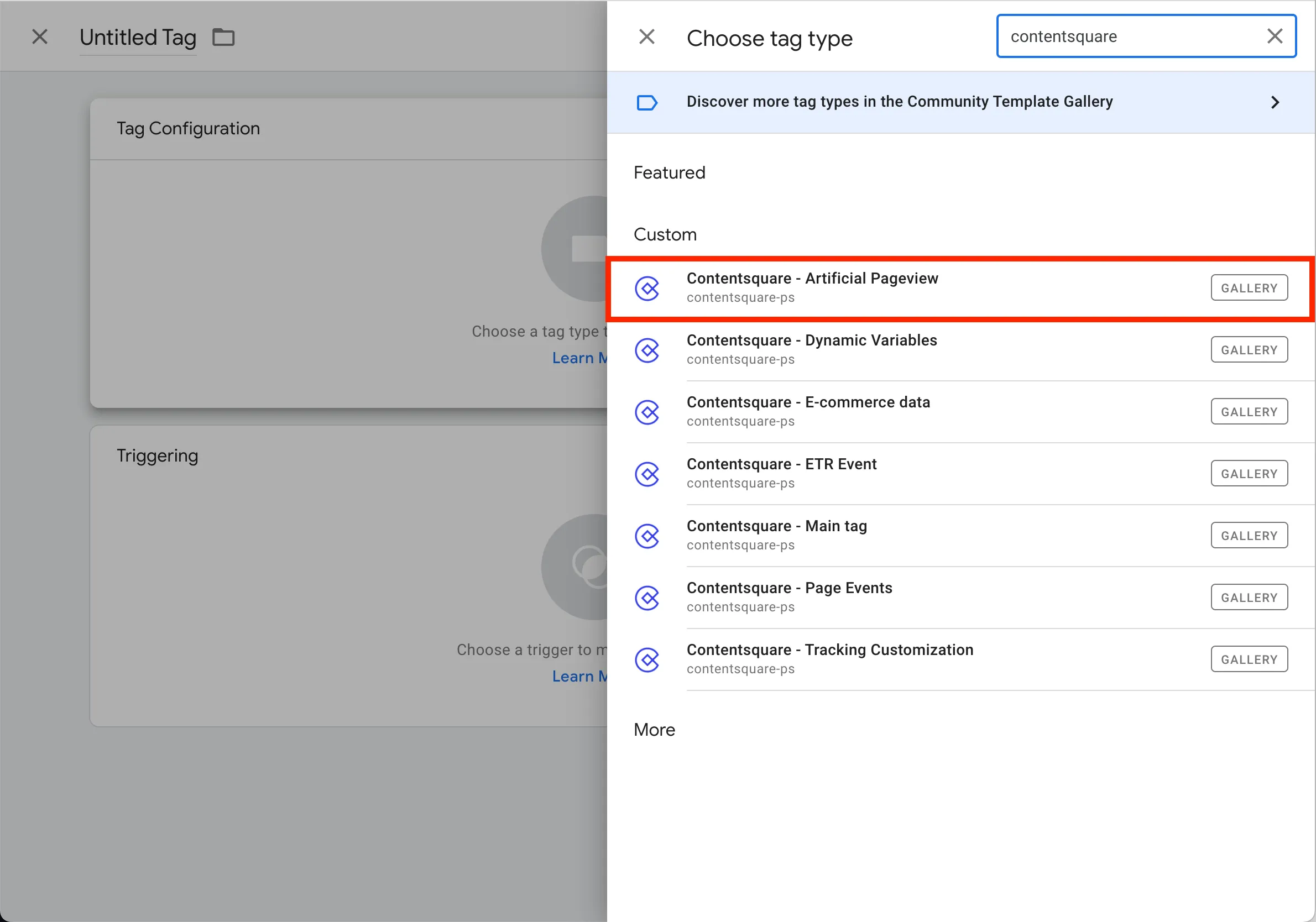 contentsquareet sélectionnez l’option Contentsquare - Artificial Pageview