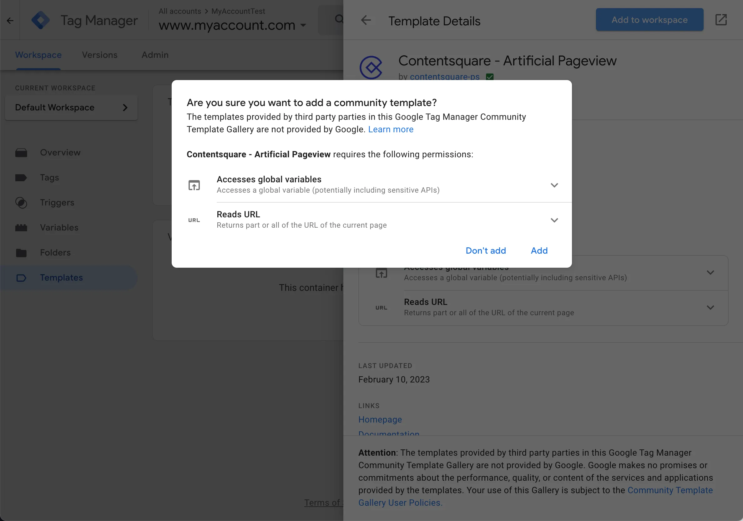 Section titled Google Tag Manager (Template)URLs stables