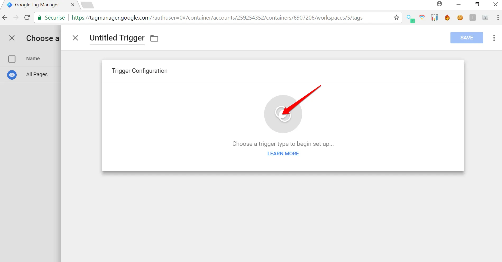 Cliquez sur “Choisissez un déclencheur pour que cette balise se déclenche …”.
