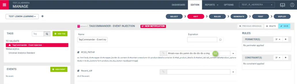 (8) Si vous connaissez l’ID de l’élément (en commençant par un #, copiez-le et collez-le dans le champ #CSS_PATH#).