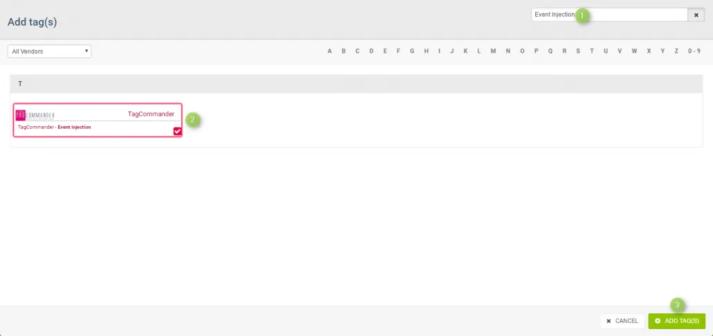 - Sélectionnez le tag.