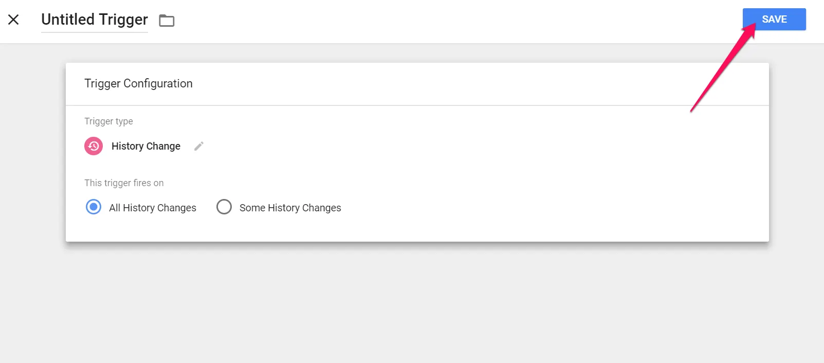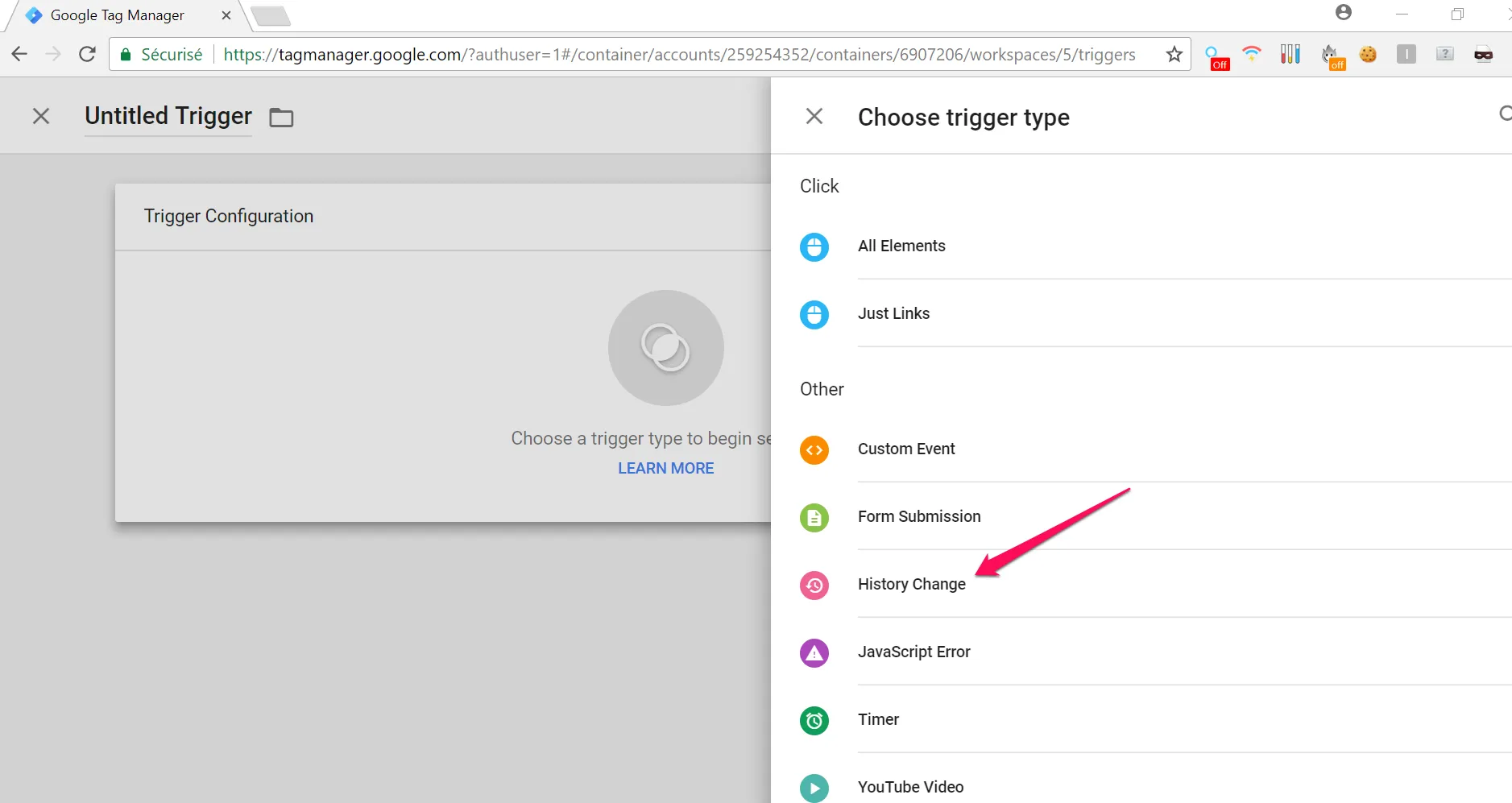 Dans la liste, sélectionnez le déclencheur “History Change”.