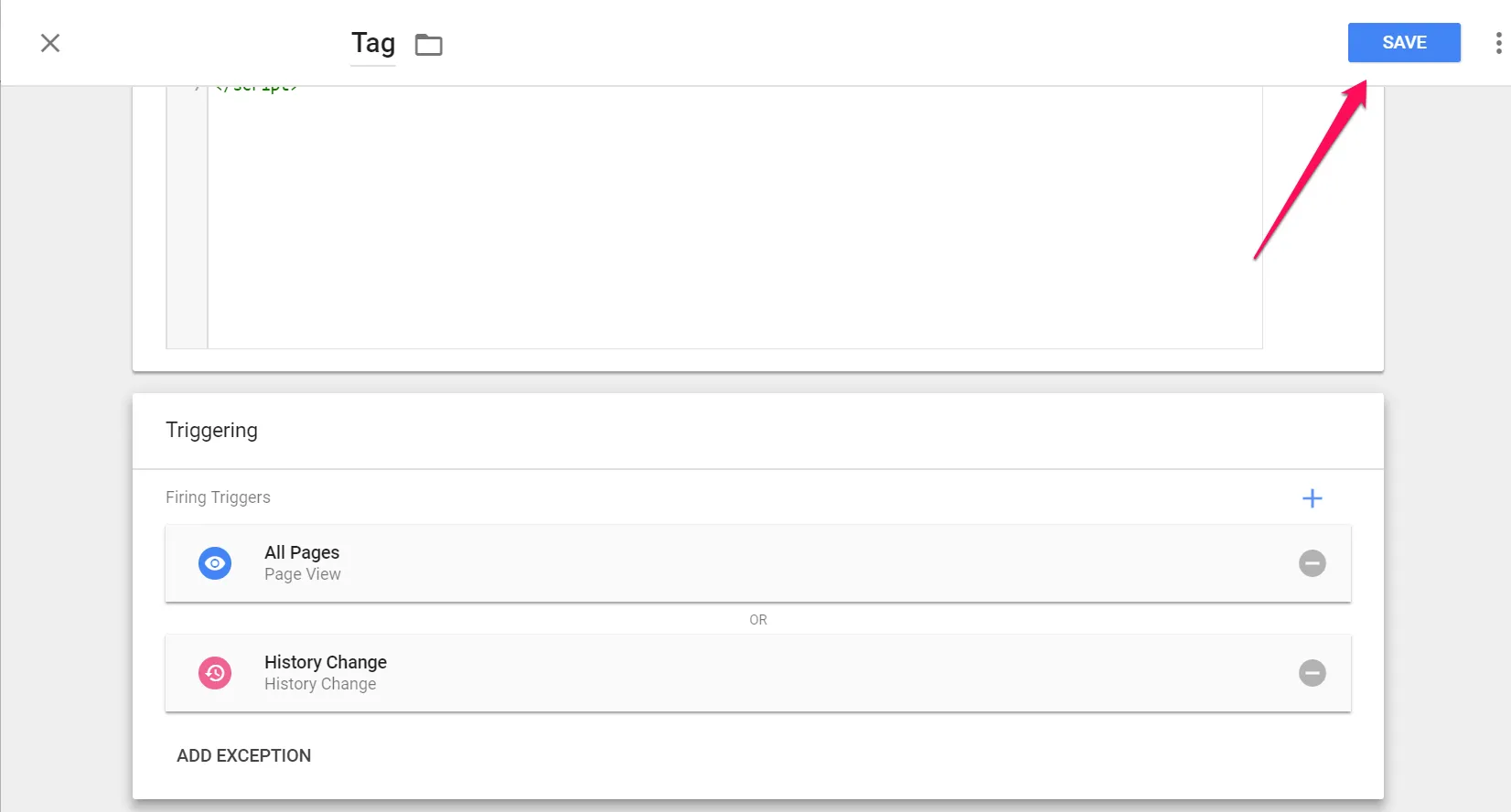 Modifier la configuration de la balise principale en ajoutant un nouveau déclencheur.
