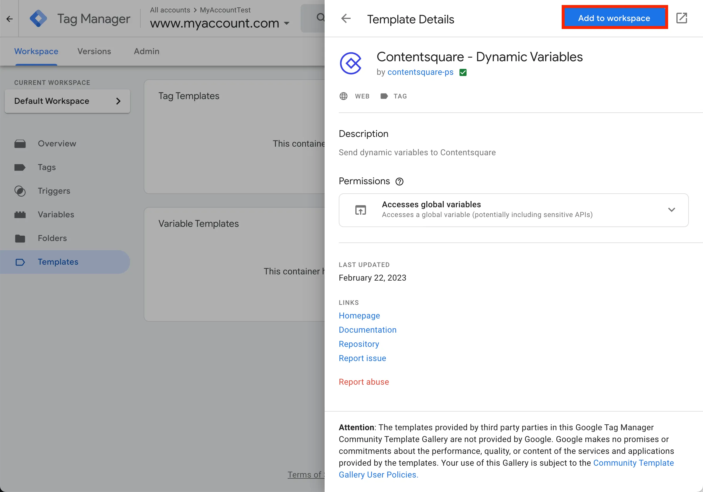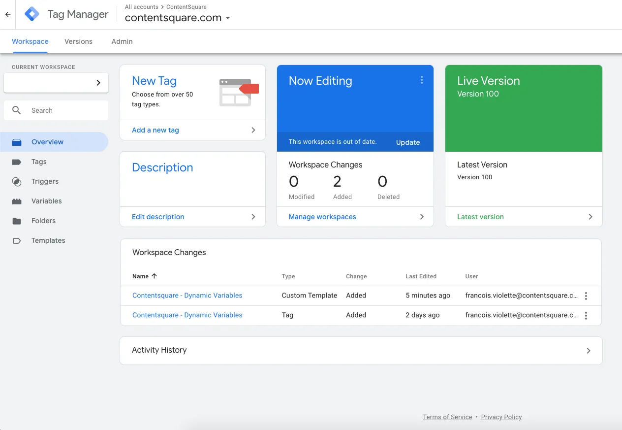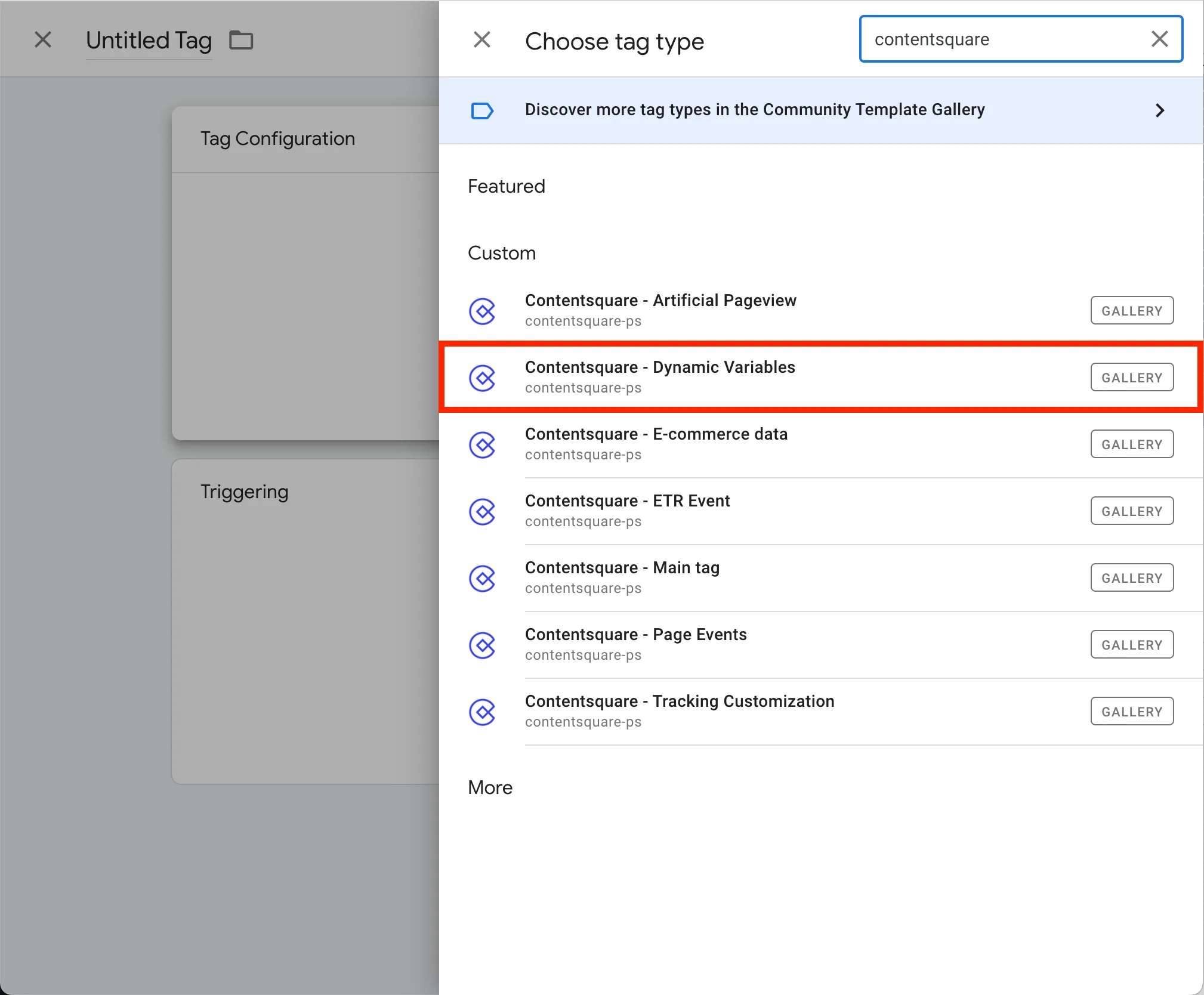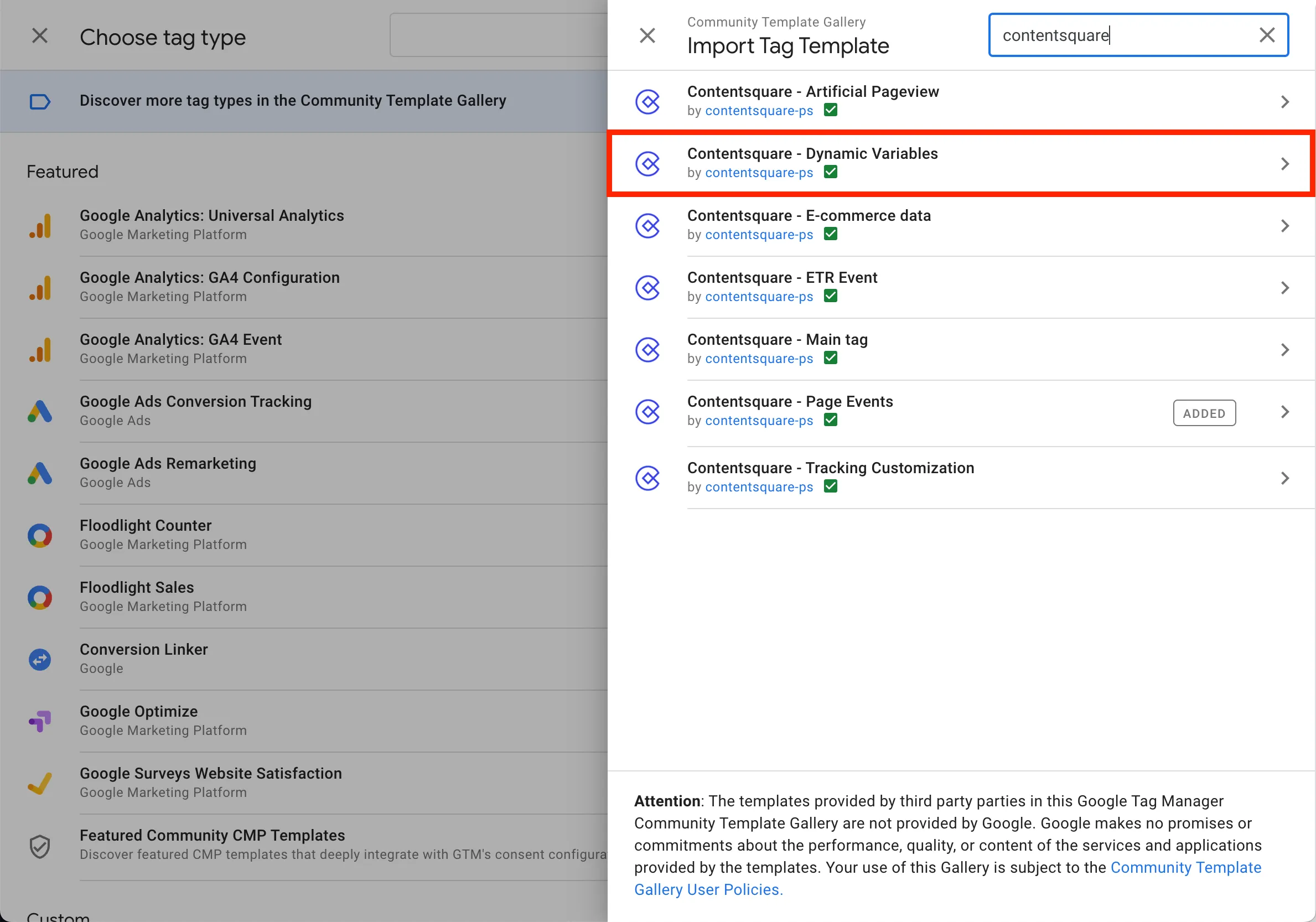 Contentsquareet sélectionnez le modèle Contentsquare - Dynamic variables.