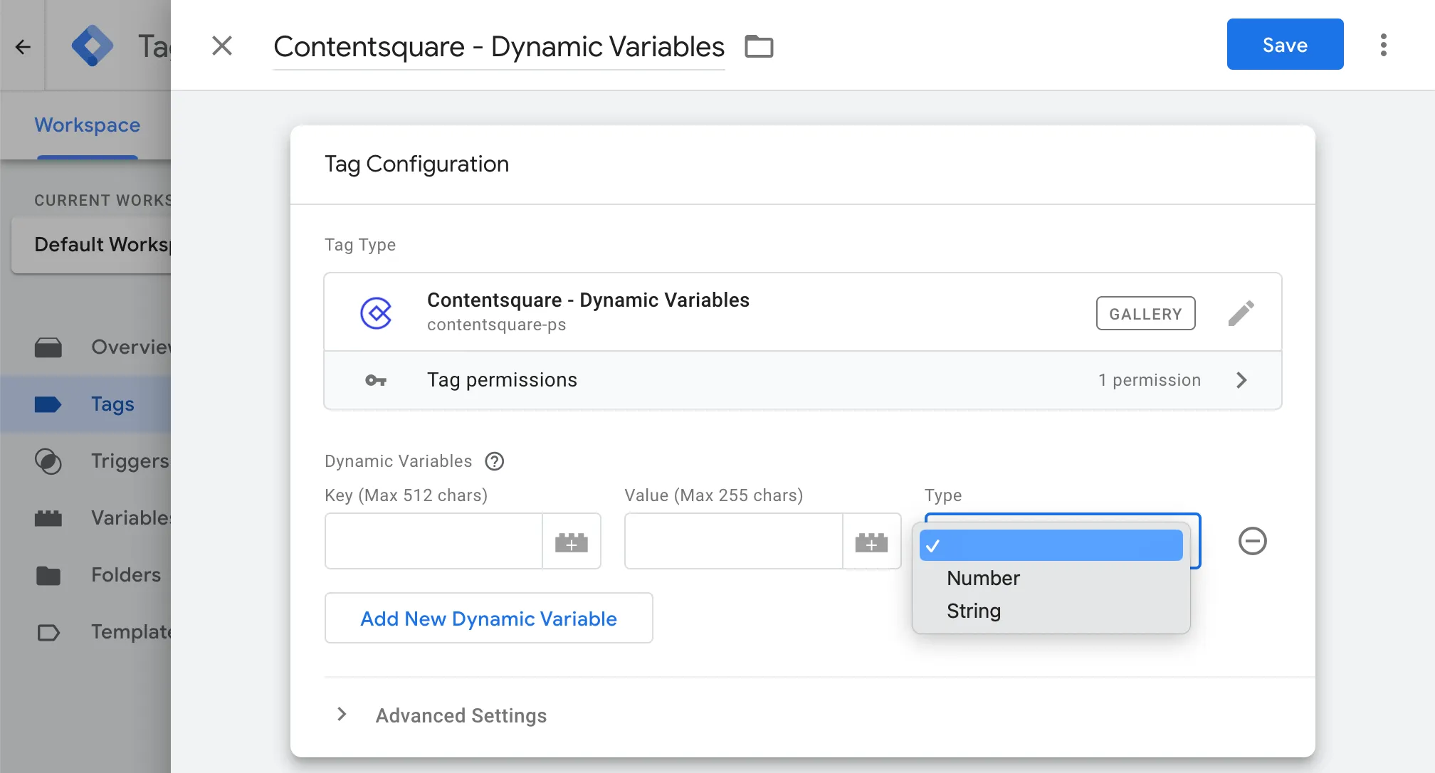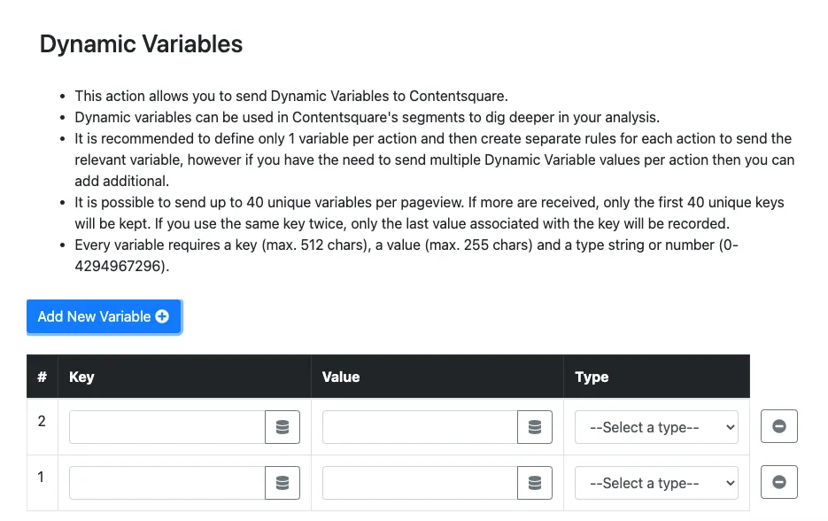 contentsquareet sélectionnez l’option Contentsquare - Dynamic variables.